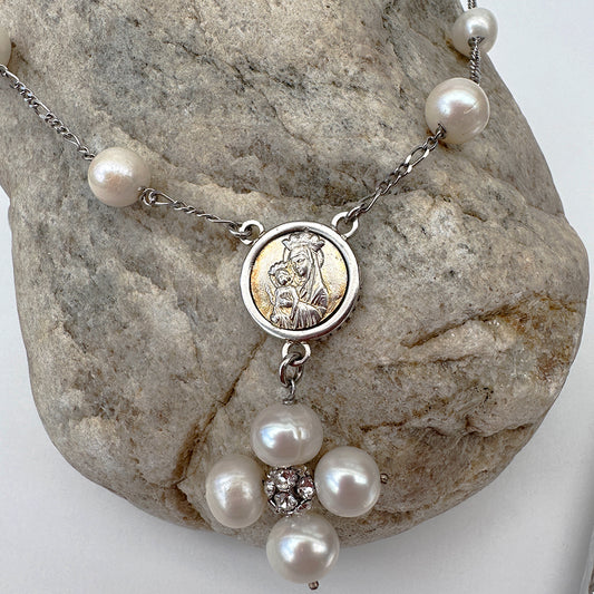 Fresh Water Pearl & Sterling Silver Mother Mary Necklace